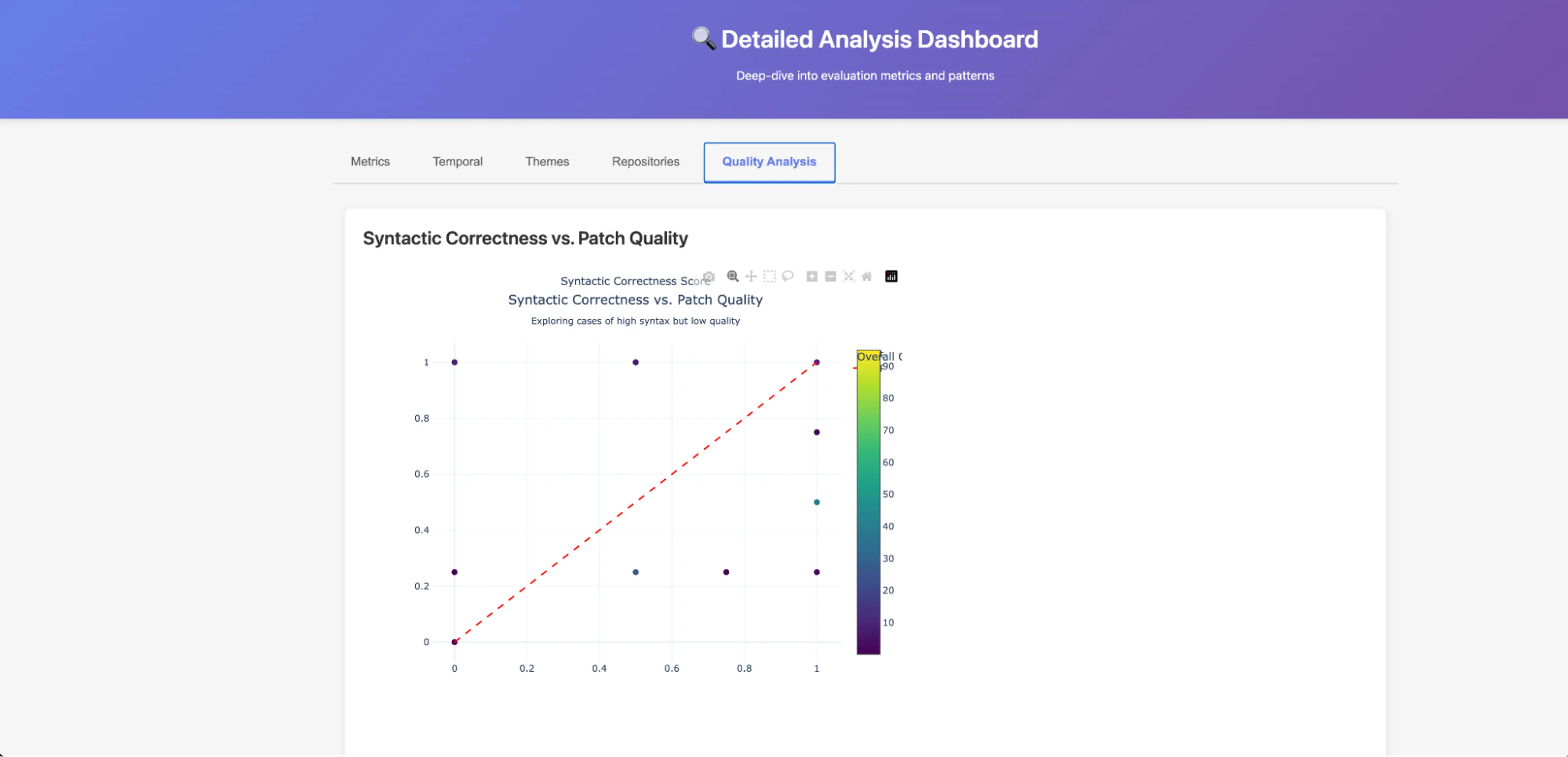 You provide a second round of feedback: "Show me examples where syntactic correctness is high but the patch still fails. What's going wrong?"
