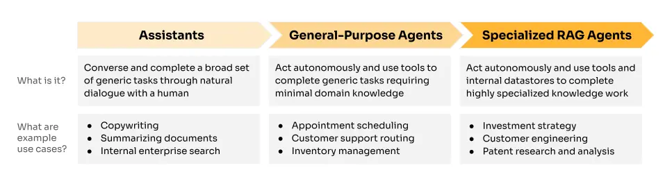 AI agents will take center stage in 2025. However, while everyone will benefit from general-purpose AI agents, subject matter experts need domain-specialized RAG agents optimized for their industry-specific workflows and unique professional requirements.