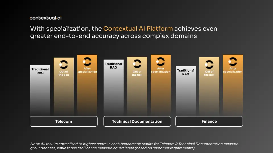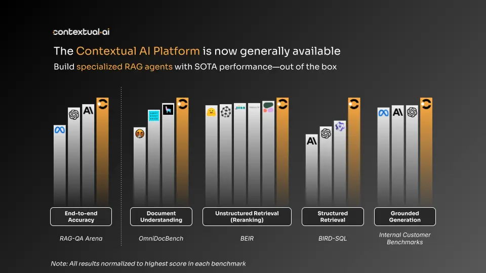 Today, we’re excited to announce the general availability of the Contextual AI Platform, our state-of-the-art solution for building specialized RAG agents that can complete highly complex knowledge tasks and improve the efficiency of human experts. This release represents an important milestone in our efforts to help organizations move their highest value AI projects past the initial demo phase and into production.