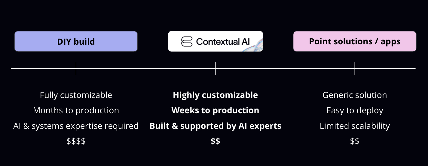 Build it yourself: Fully customizable, but requires scarce AI expertise, months of development, and constant optimization, with no guarantee of project success