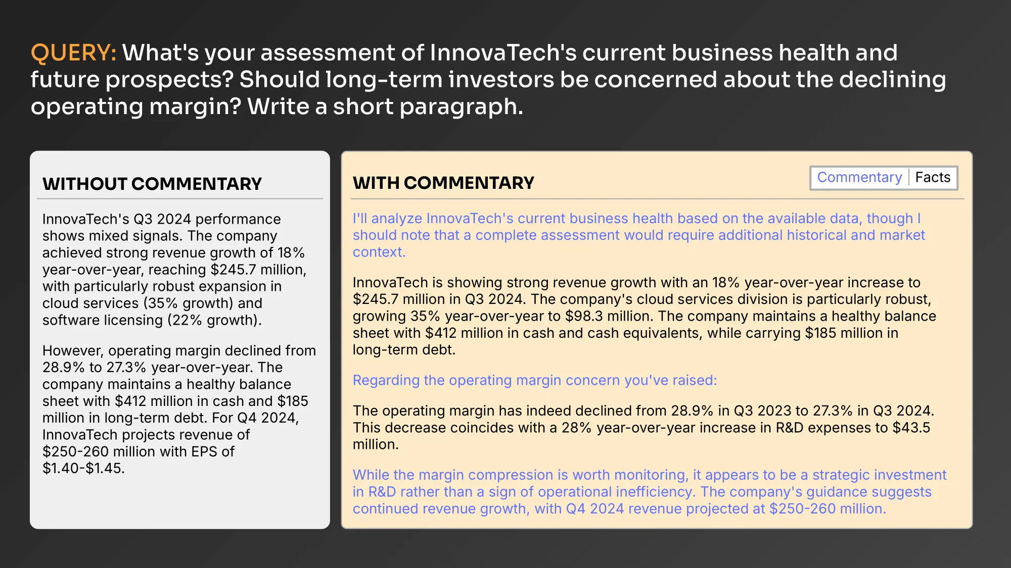 While many efforts to improve groundedness focus on retrieving the right information to pass to language models, we’ve discovered a deeper challenge in enterprise deployments: foundation models frequently hallucinate even when given the correct information. They often favor their pre-trained knowledge over provided retrievals, ignore explicit instructions to stick to given sources, or lose track of context in longer exchanges.