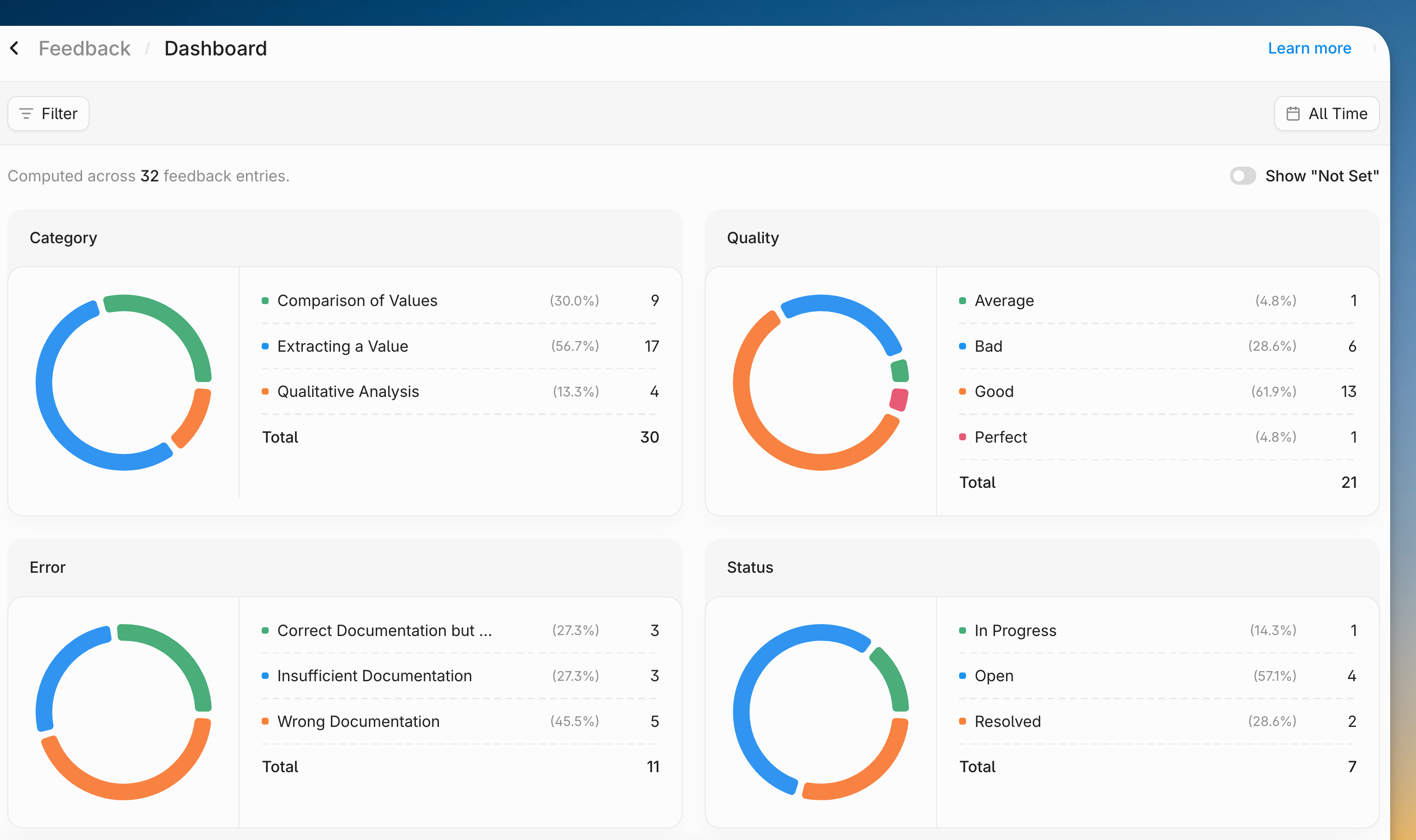 - Categorize: Create custom labels and use them to annotate and organize user feedback