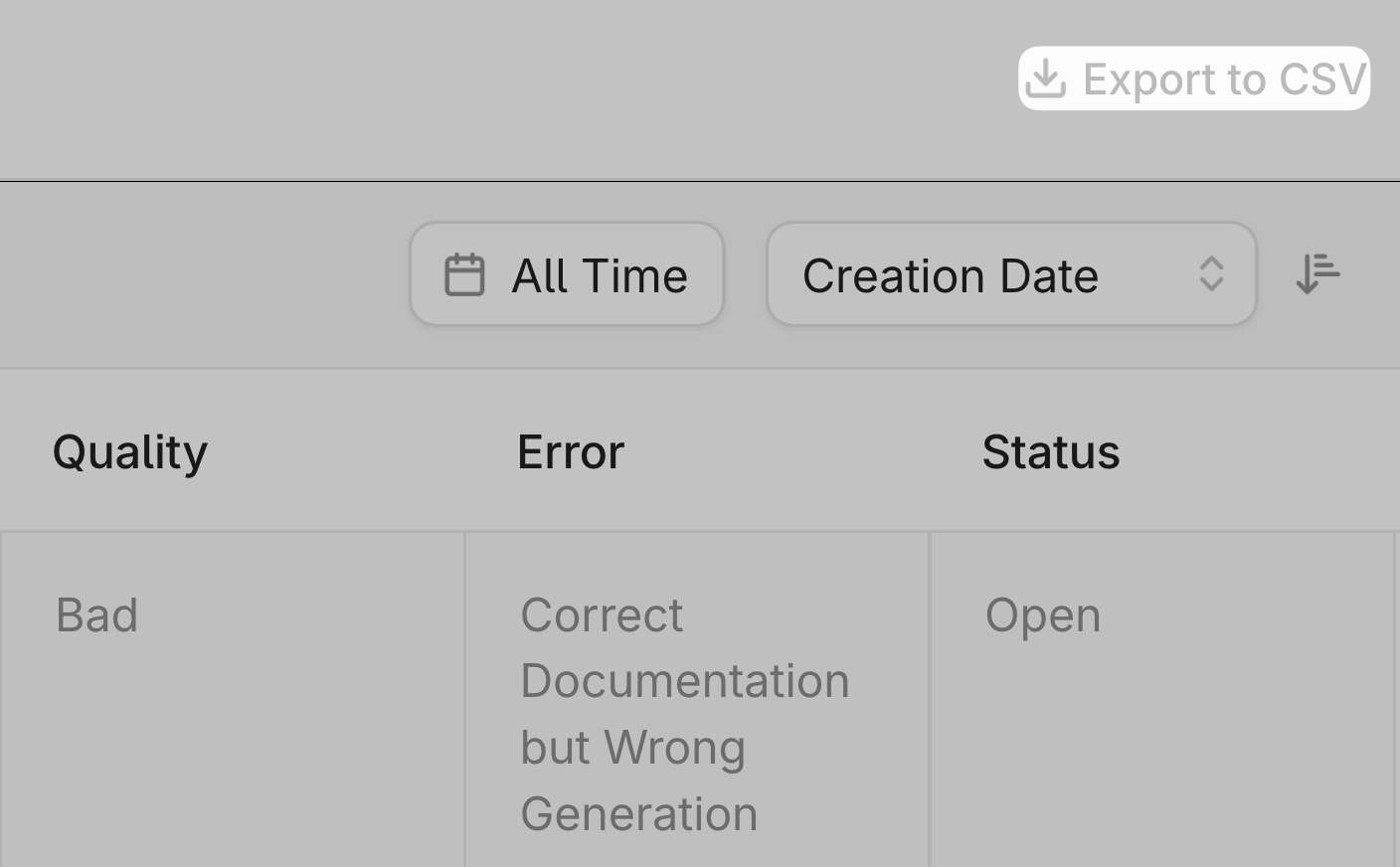 Manage annotated outputs with granular filtering and status tracking tools. Granular filters can surface outputs that need attention by evaluation criteria, time period, or resolution status.