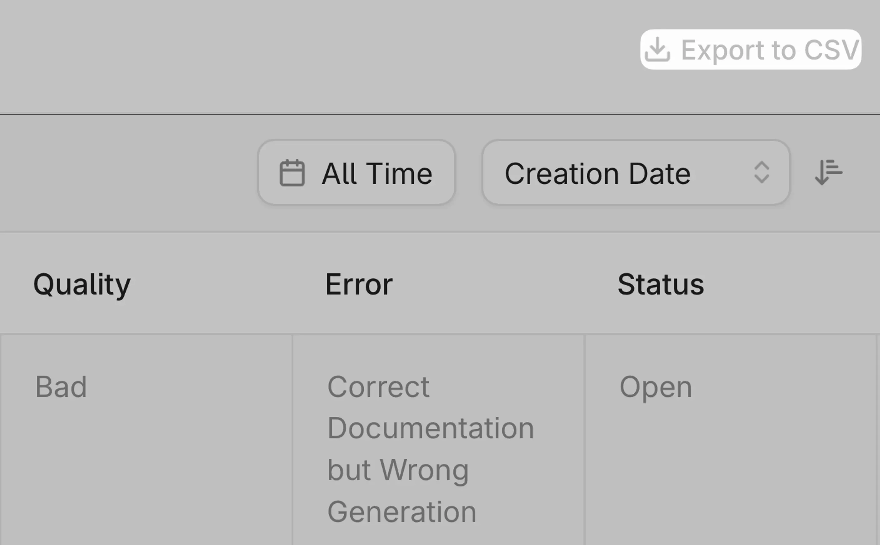 Export data as a CSV anytime to share with other teams or integrate with external systems.