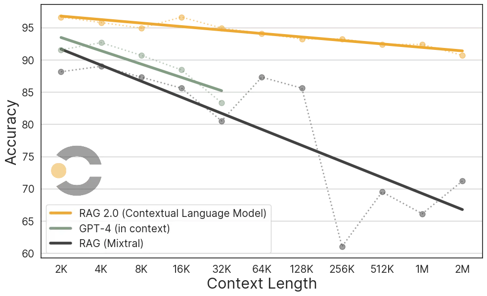 When evaluating real world implementations, some may wonder how RAG 2.0 compares to the latest models with long context windows — so we dove into this as well.