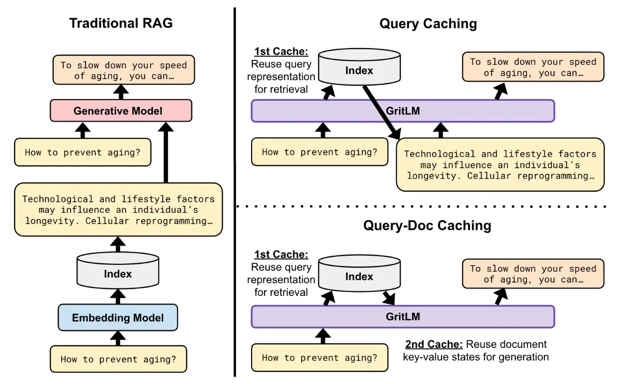 Most modern LLM deployments, especially in production settings, tend to follow the RAG paradigm, where a retriever and language model work together to solve the problem. Traditional RAG is computationally far from optimal, because the query and the documents have to be encoded twice: once by the embedding model for retrieval, and once by the language model as context. If we had the same model, we could cache (i.e., save for later) parts of the network during retrieval, and re-use them during generation.